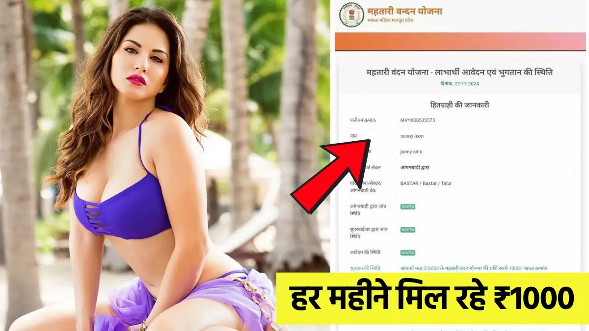 योजना के लाभार्थियों की सूची में एक ऐसा नाम जुड़ा है जिसने सबको हैरान कर दिया है। सनी लियोन (Sunny Leone) का नाम इस योजना के पंजीकरण रिकॉर्ड में पाया गया है, और उनके नाम से बाकायदा हर महीने 1,000 रुपये की राशि ट्रांसफर की जा रही है।