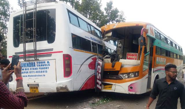 जानकारी के मुताबिक, सोमवार की दोपहर रायपुर रोड़ पर गारका व सिंगनपुर के पास यह हादसा हुआ। महेंद्रा ट्रेव्हल्स की बस क्रमांक सीजी 04 ईए 0144 और नरेश ट्रेव्हल्स की बस क्रमांक सीजी 27 एफ 8899 के बीच जबरदस्त भिड़ंत हो गई। दोनों बसें वितरीत दिशा से आ रही थी।