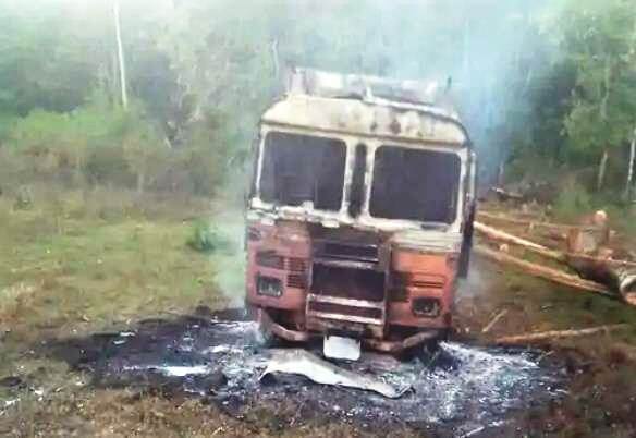 नक्सलियों ने 3 ट्रकों में लगाई आग, ड्राइवरों से मारपीट भी की