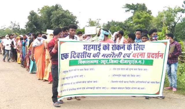 पंकज दाउद @ बीजापुर। महंगाई, सिलगेर गोलीकाण्ड की जांच और रेत खदानों को पंचायतों के सुपुर्द करने समेत आठ सूत्री मांगों को लेकर शनिवार को उसूर ब्लाॅक के आवापल्ली एवं भोपालपटनम में हजारों आदिवासियों ने कोविड नियमों को ताक पर रख जंगी रैली निकाली।